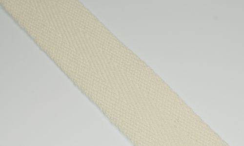 Band mit Köperbindung in rohweiß, 25mm breit, Baumwolle mit Polyester.