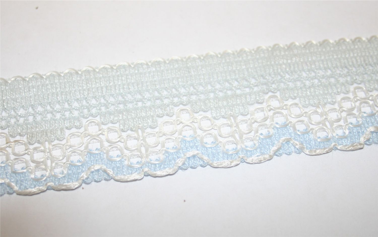 Spitzenborte in hellblau mit weiß, Polyacryl, 38mm breit