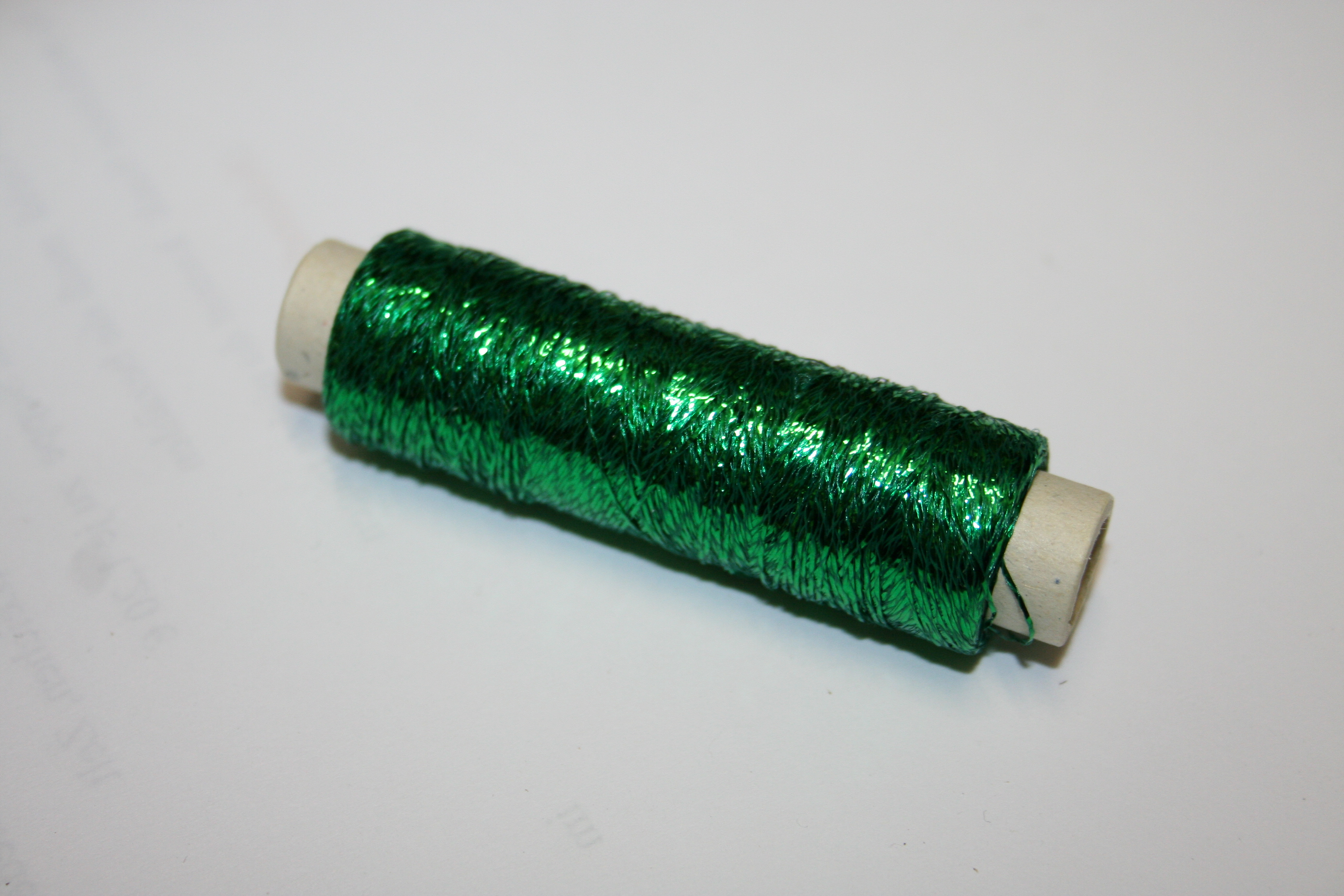 Eine Rolle Glitzergarn/ Lurex in grün.