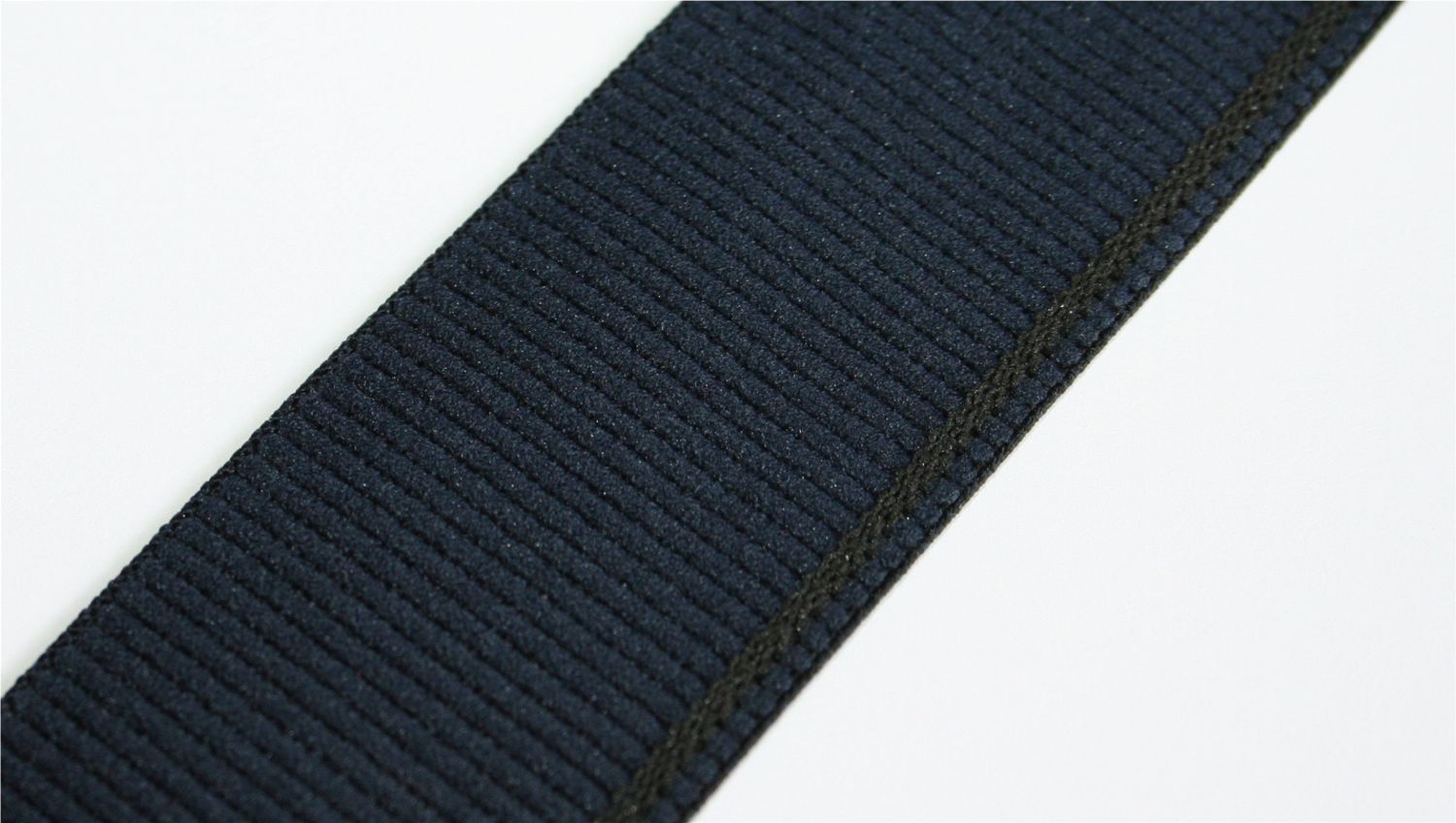 Bundband elastisch in dunkelblau mit Rippen und schwarzem Streifen, 35mm breit.