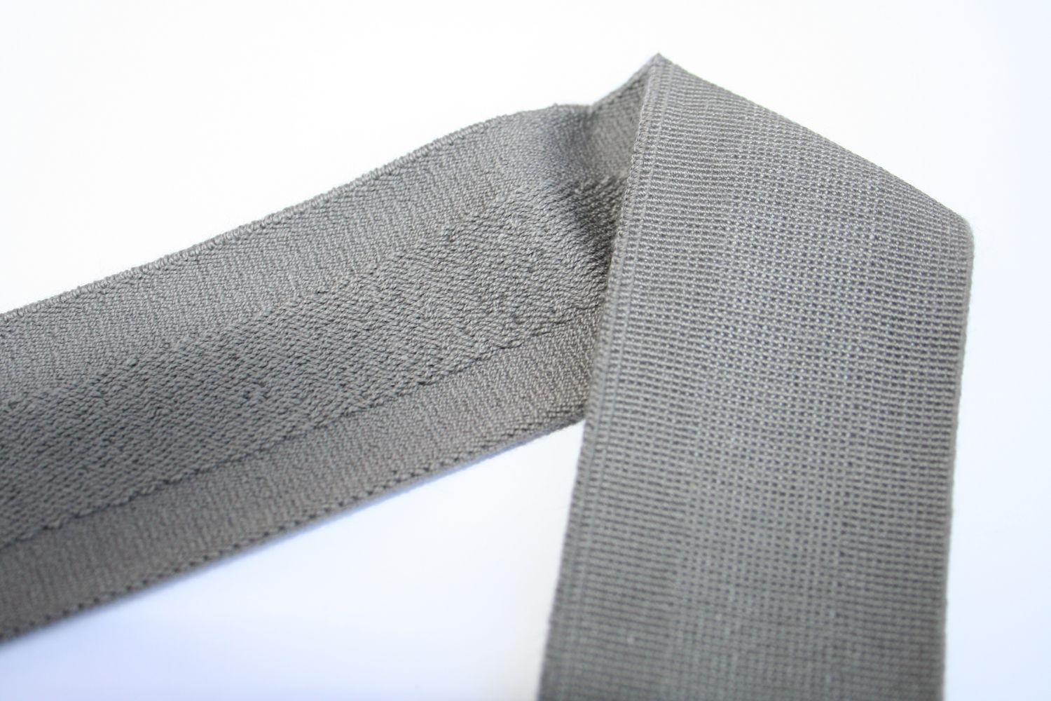 Gummiband in grau-beige, Oberseite leicht gereiht, die Breite ist 35mm.
