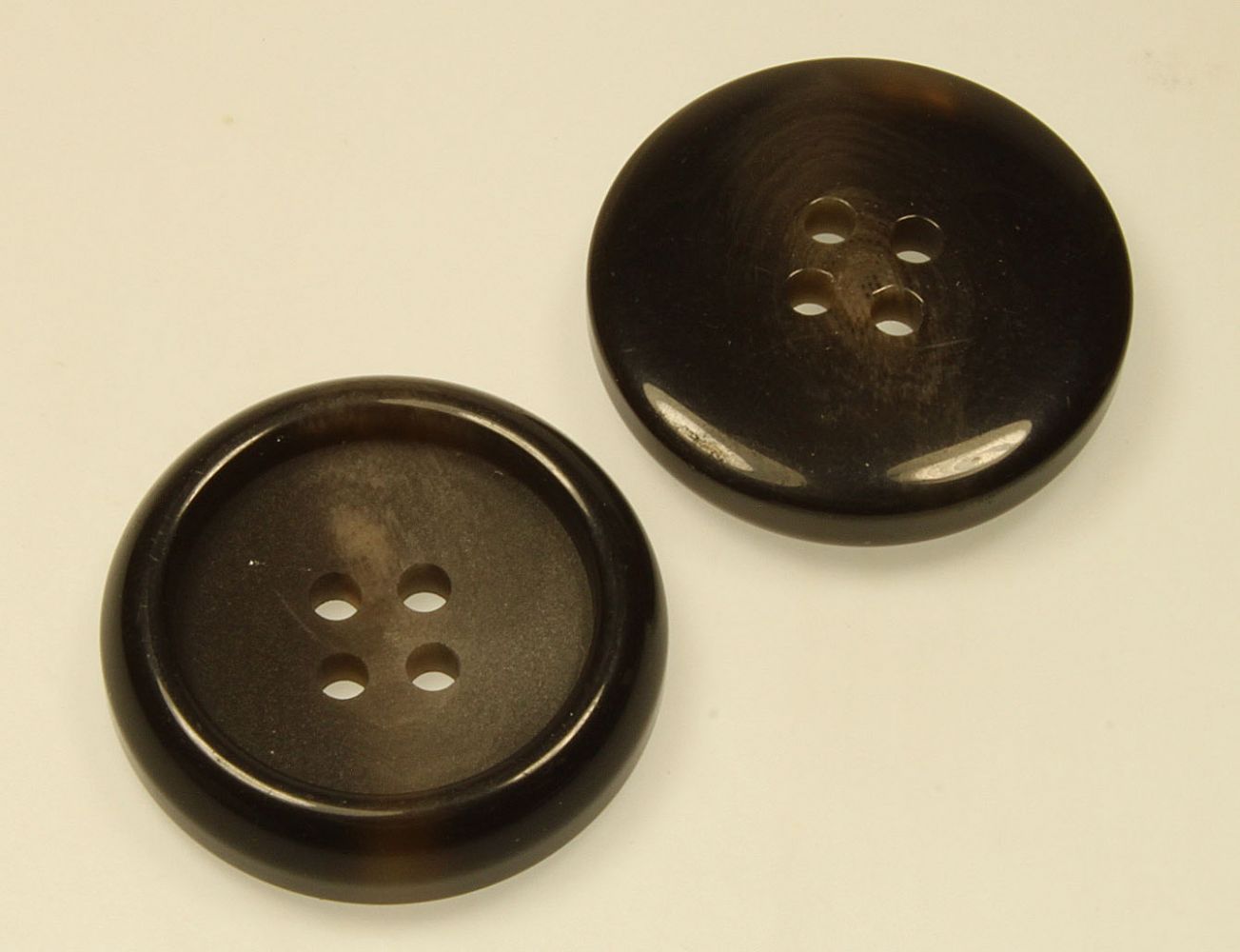 4-Lochknöpfe, aus Horn, in braun, der Durchmesser ist 25mm.