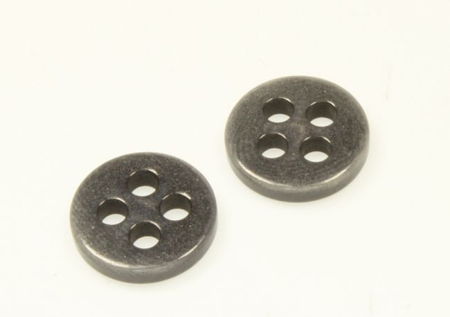 10 Stück, 4-Lochknöpfe, Kunststoff, in grau-blau, der Durchmesser ist 11mm.