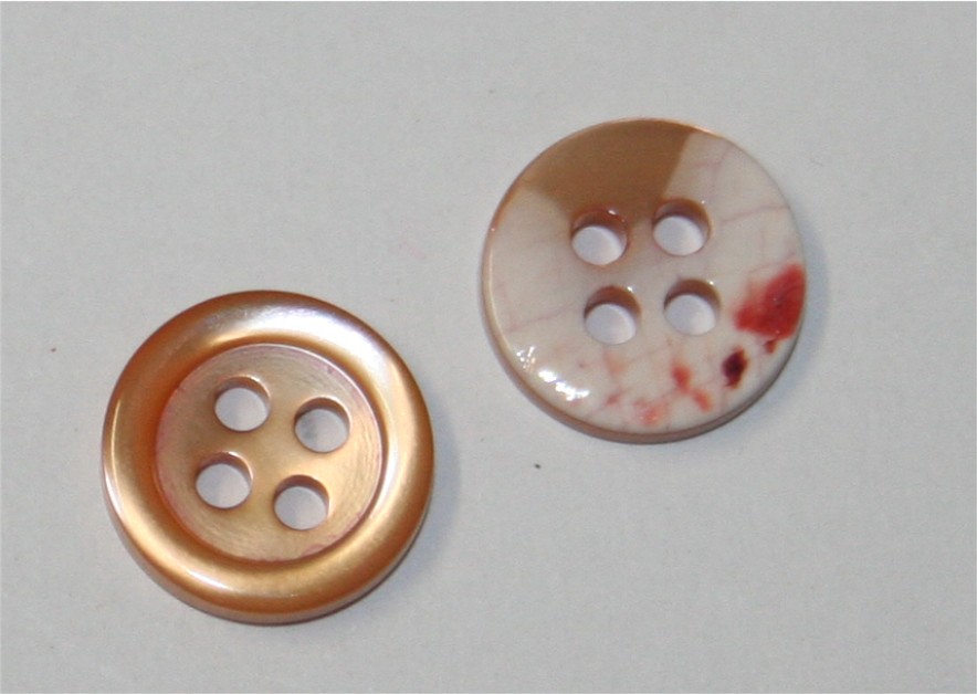 10 Stück, 4-Lochknöpfe in lachsfarben glänzend, perlmutartig, der Durchmesser ist 11mm.