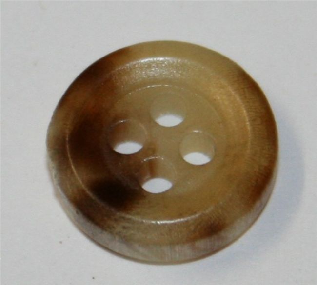 10 St. 4-Lochknöpfe in braun- hell meliert, aus Kunststoff, der Durchmesser ist 12mm.