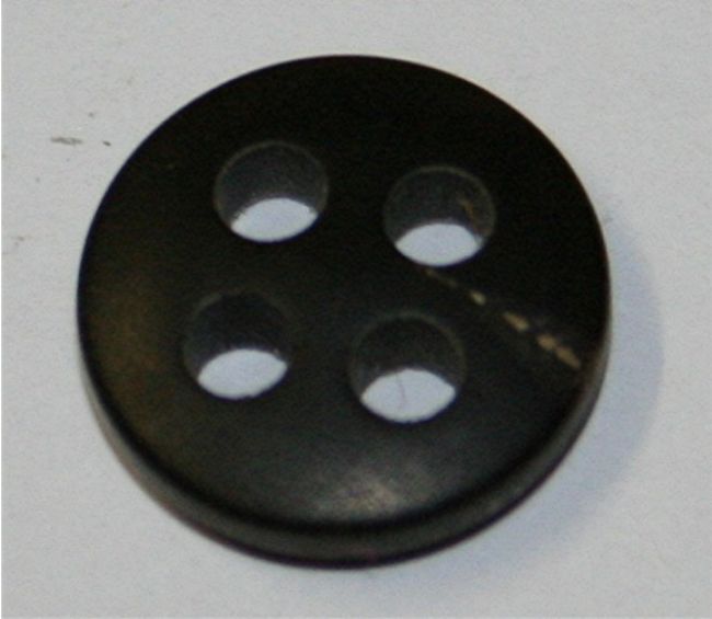10 St. 4-Lochknöpfe in schwarz, aus Kunststoff, der Durchmesser ist 12mm.