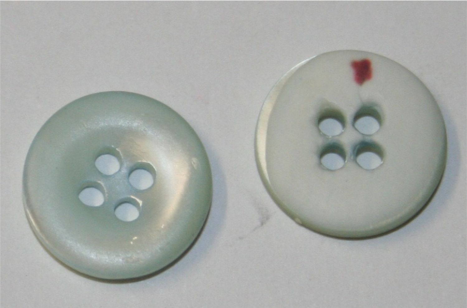 10 Stück, 4-Lochknöpfe in hellblau glänzend, aus Kunststoff, der Durchmesser ist 15mm.