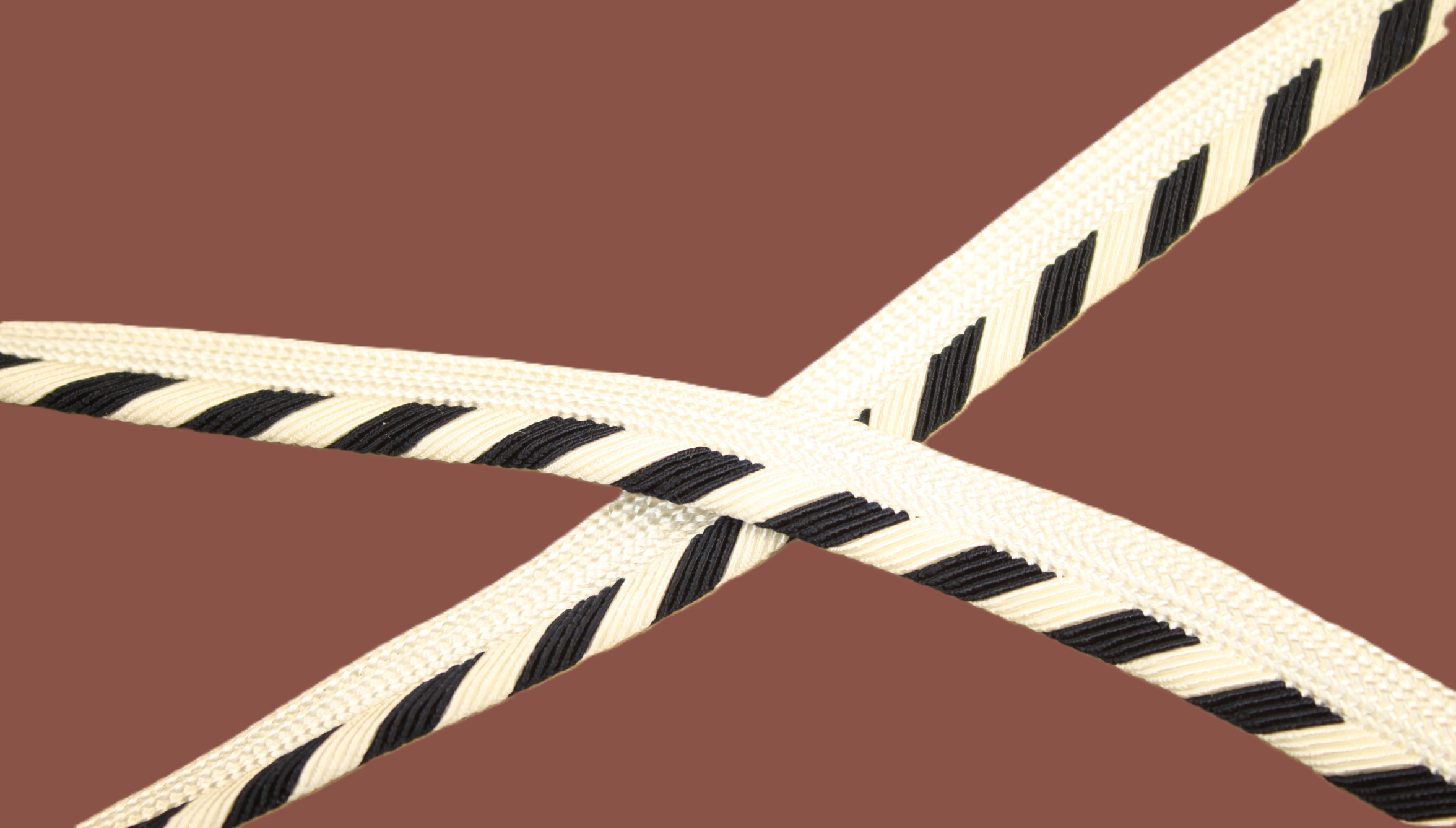 Paspolband, weiß mit schwarz,leicht glänzend, Gesamtbreite 15mm, davon 7mm zum annähen.
