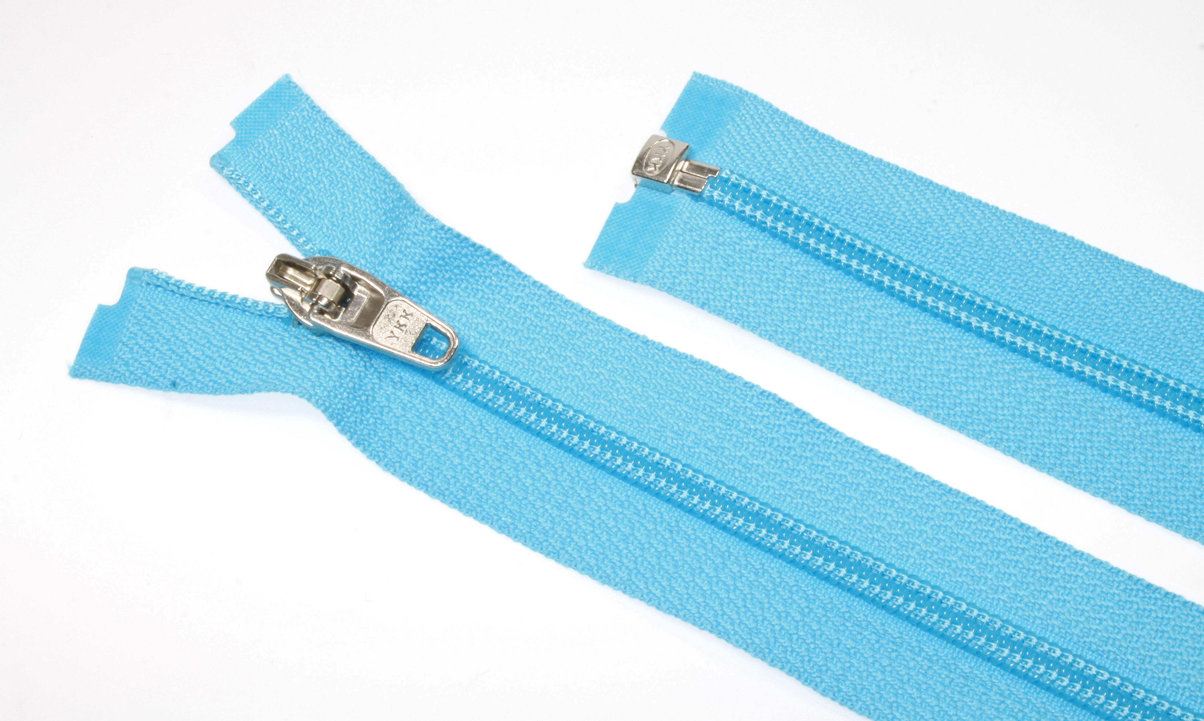 - 5 Stück teilbare Reißverschlüsse (YKK) - Spirale Kunststoff 6mm - Band: Polyester - Schieber mit Hakenfeststeller - Farbe: türkis - Länge: 18cm