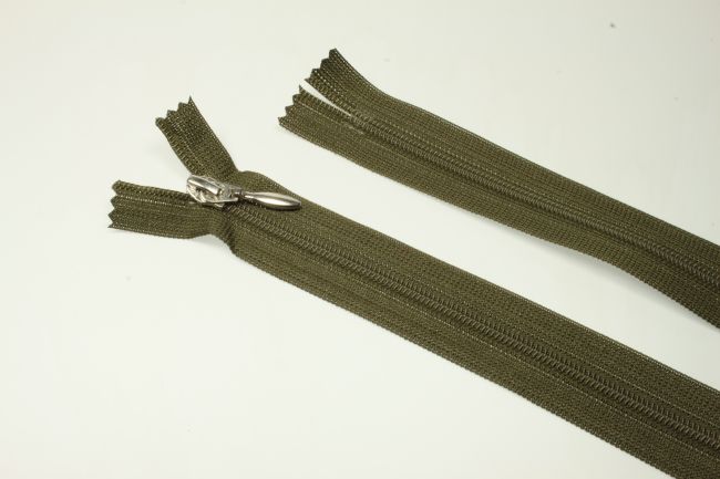 - 14 Stück nicht teilbare Reißverschlüsse (YKK) - Spirale Kunststoff 3mm, flach - Band: Polyester - Automatikschieber - Farbe: oliv - Länge: 18cm