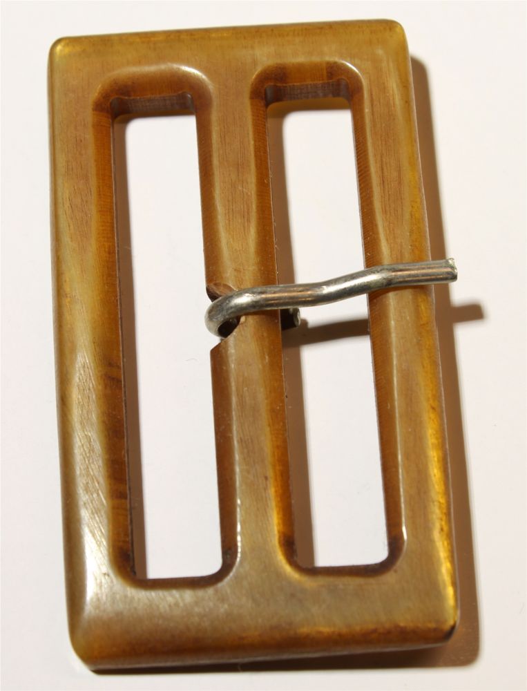 Schließe in beige meliert, aus Kunststoff, Maße aussen 38mm X 66mm, Stegbreite 50mm, mit beweglichem Dorn.